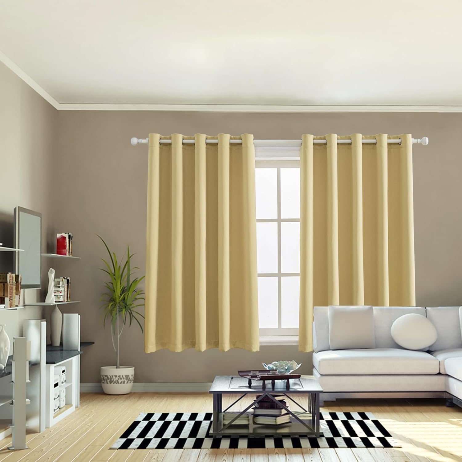Anytime 100% Blackout Curtain Set, Thermal Insulated & Energy Efficiency Window Draperies for Guest Room, Full Shading Panels for Shift Worker and Light Sleepers(Beige, 2 Panels, 70W x 63L)