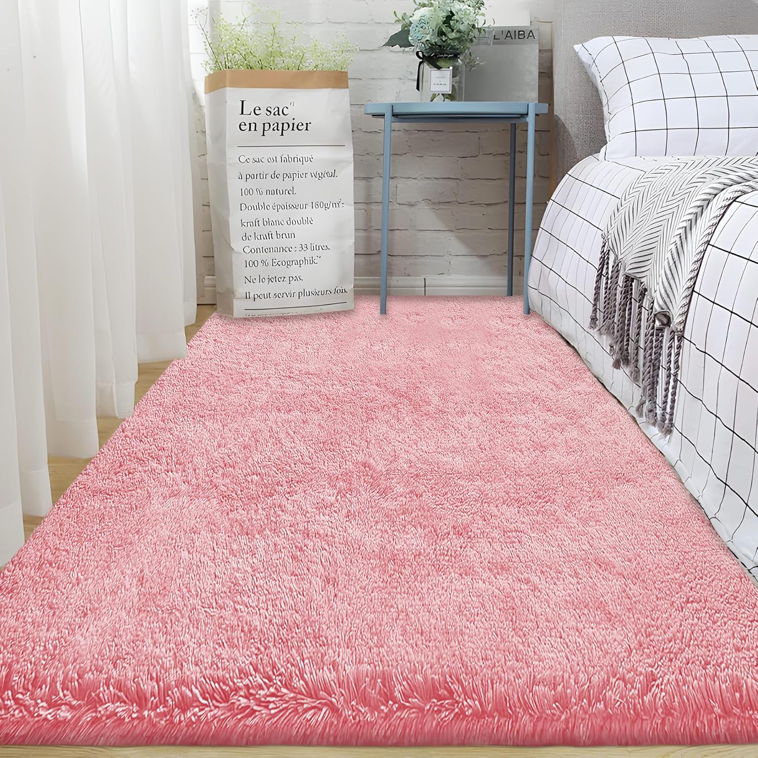 2x6 Runner Rug for Bedroom: Fluffy Shag Soft Washable Rugs Small Fuzzy Plush Indoor Carpet for Hallway Bedside Dorm Kids Girls Boys Room (Pink, 2'x6')