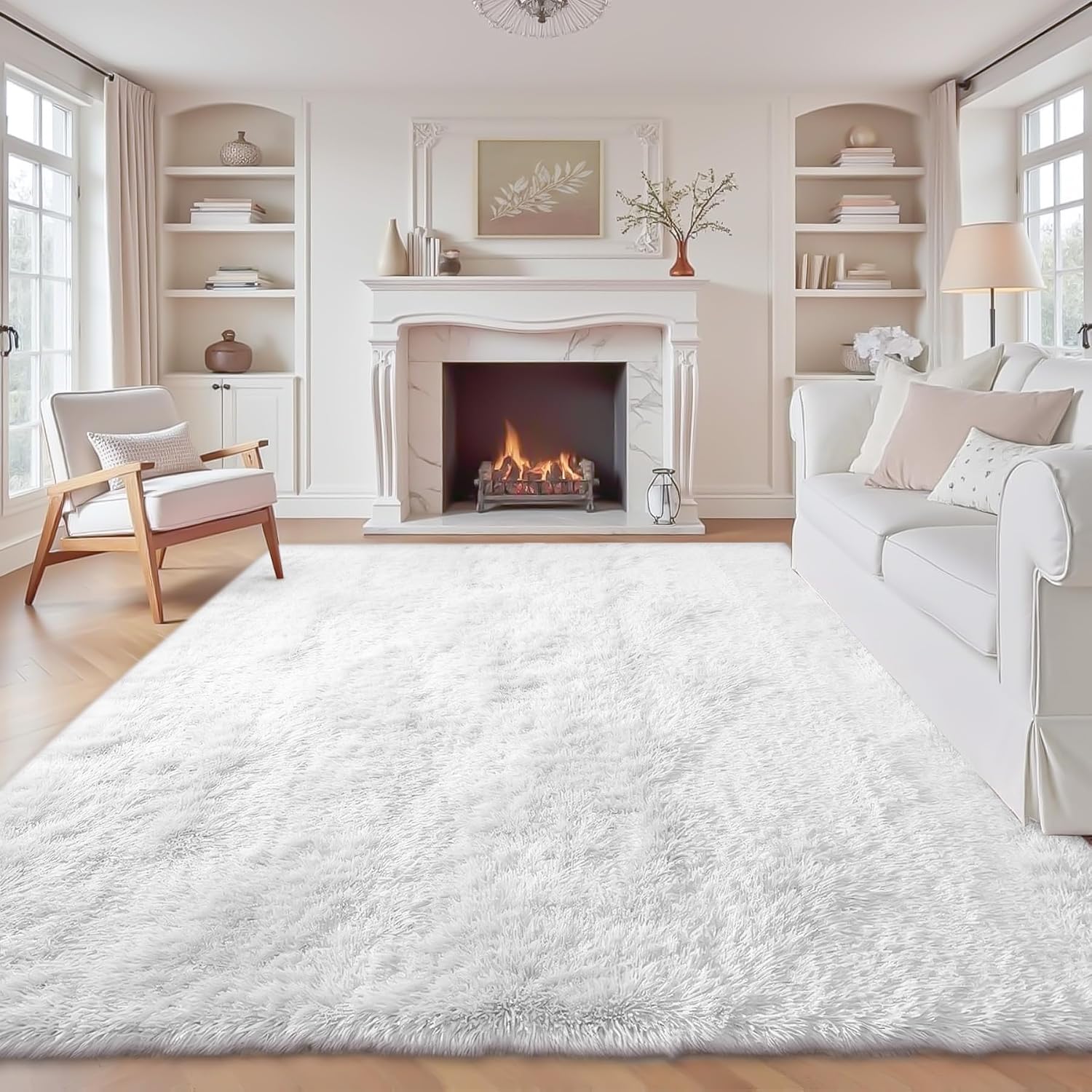 6x9 Area Rug for Living Room: Fluffy Shag Soft Washable Rugs Large Fuzzy Plush Indoor Carpet for Bedroom Nursery Playroom Kids Girls Boys Room (White, 6'x9')