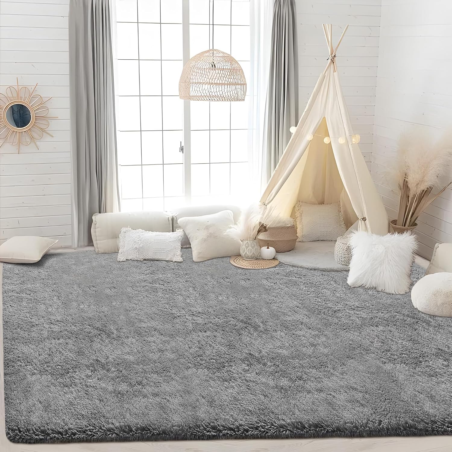 4x6 Area Rug for Living Room: Fluffy Shag Soft Washable Rugs Fuzzy Plush Indoor Carpet for Bedroom Nursery Playroom Dorm Kids Girls Boys Room (Grey, 4'x6')