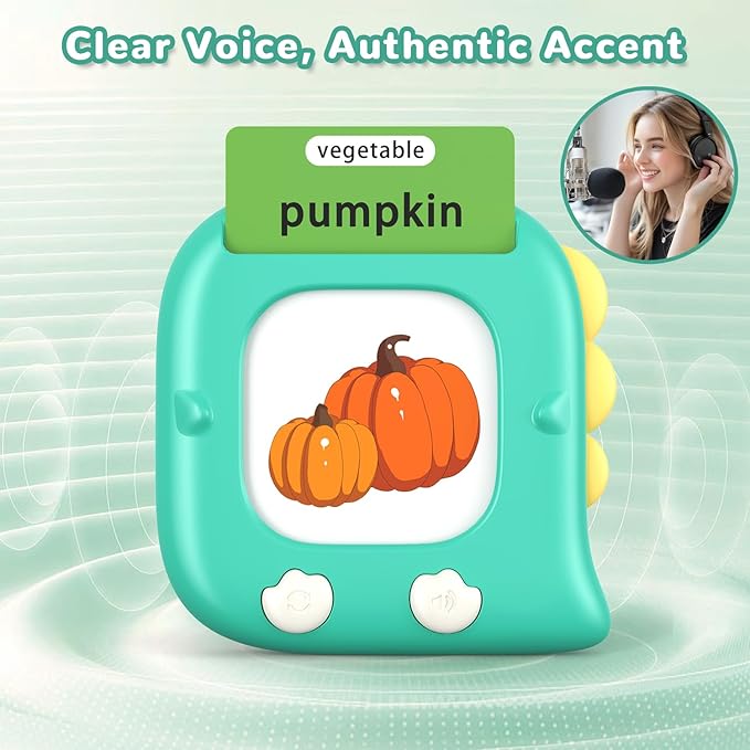 - [ Easy to Use ] Turn on the switch, put the card into the card reader’s slot, and the card reader will pronounce the words. And you can repeatedly read and learn again and again by pressing the repeat button. It can be used independently by toddlers ages 2 and up.