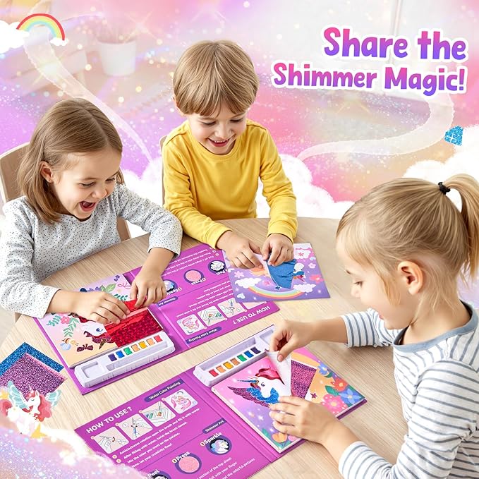 - Sparkling Craft Art, Easy to Create Stunning Princess and Magical Pony Effects: Craft is simple yet incredibly fun! Simply peel away parts of the design to reveal the sticky surface, apply the sparking pieces, then gently peel it off to reveal a dazzling princess and magical pony artwork. Not only will kids experience the joy of success, but they will also improve their focus and fine motor skill from this craft activity. The vibrant princess-themed artwork will leave kids proudly showcasing their creations