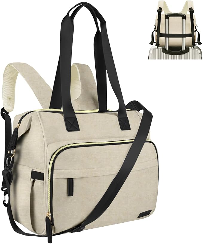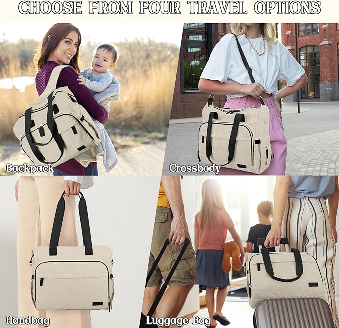 - 👜🍼4 Ways to Wear - Taking into account all your travel needs, we have designed 4 option to wear: tote, crossbody diaper bag, backpack and luggage bag. Strap is adjustable and removal, backpack strap can be hidden in the back pocket.
