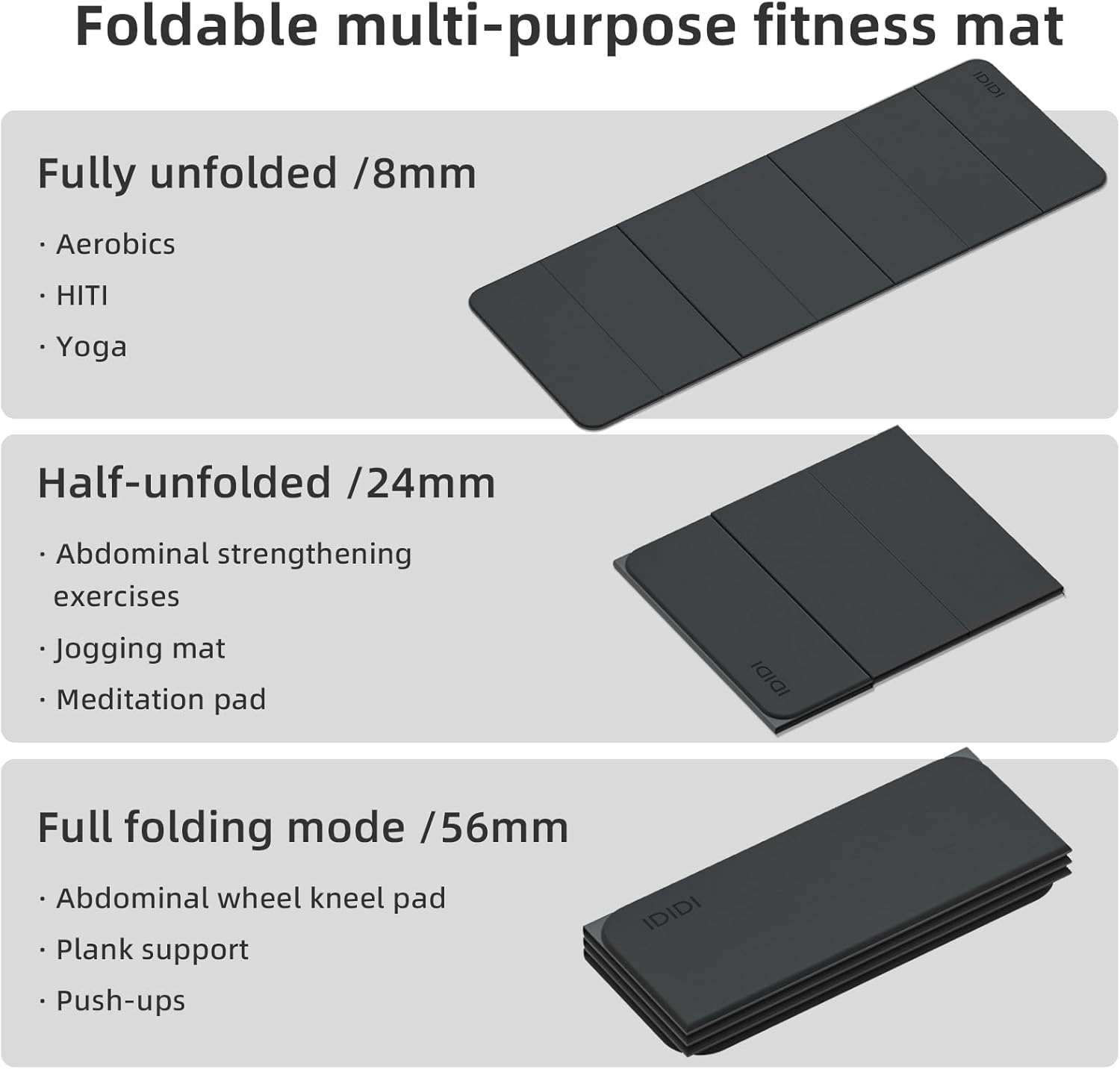 - Multi-Functional Fitness Mat for Enhanced Workout Support: The Mat doubles as a step stool for incline/decline exercises, adding versatility to your workouts. Whether you plank, jump, dance, lunge, or balance, this thick yoga mat can be folded for extra support or to introduce a challenging variety to your fitness routine
