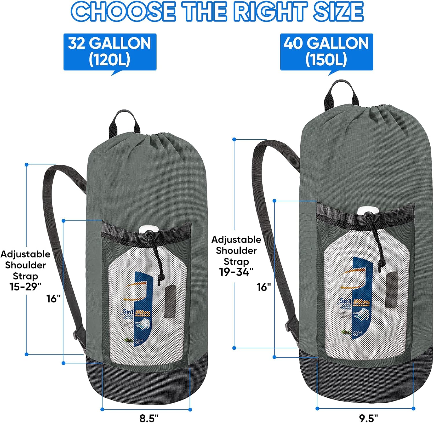 - 120L Large Laundry Bag: These travel laundry bags measure 29 "H X 13 "L with a large capacity of up to 120 L, enough for holding 2-3 batches of clothes; They also feature two front mesh wash pockets (16 "H X 8.5"L each), making your laundry backpack have space for storing detergent, shoes, and other essentials