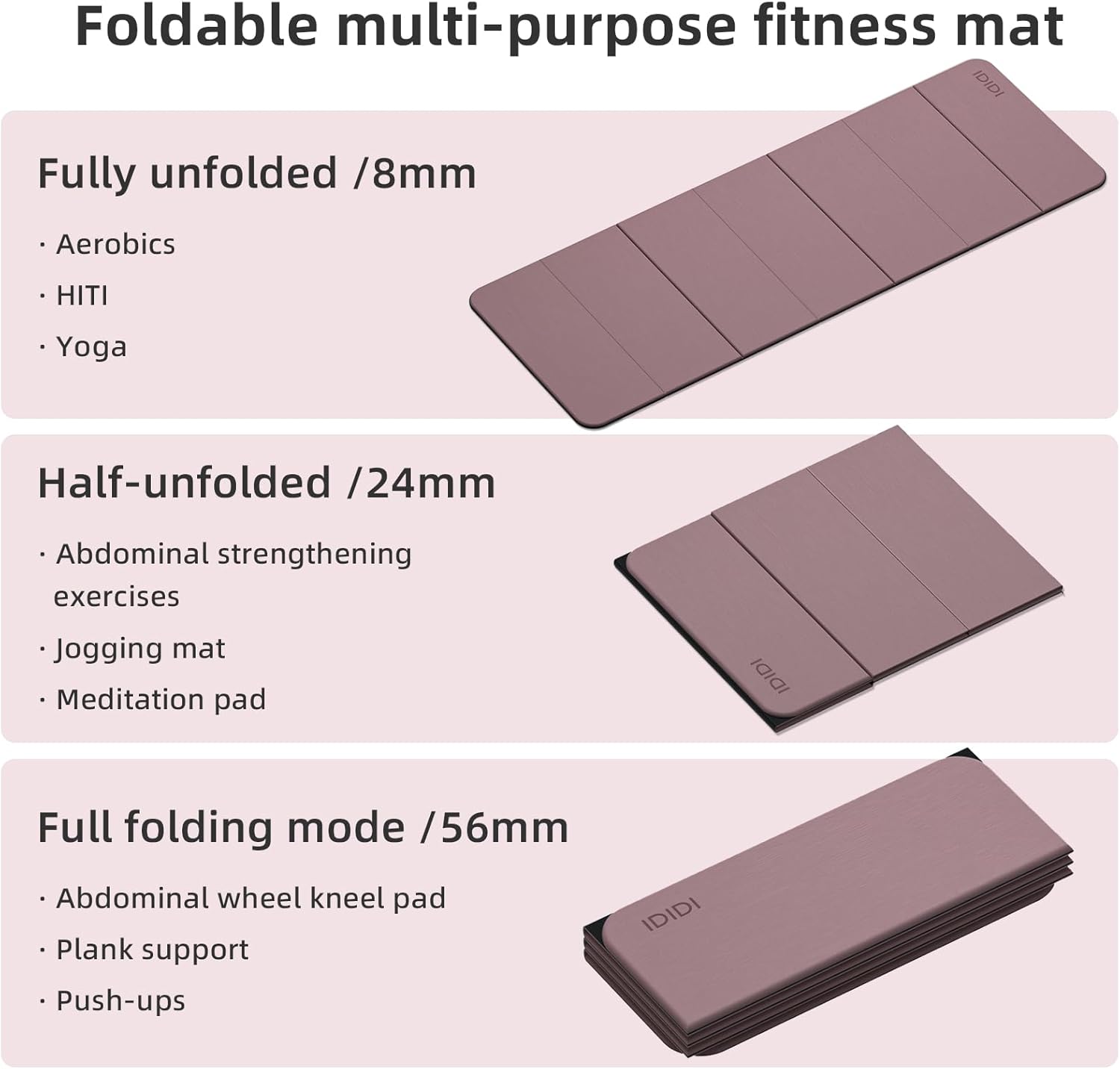 - We've upgraded on the traditional yoga mat with foldable fitness MATS designed for greater support, versatility and convenience as you move. It is 2 times thicker than the average yoga mat, making it more supportive and comfortable.