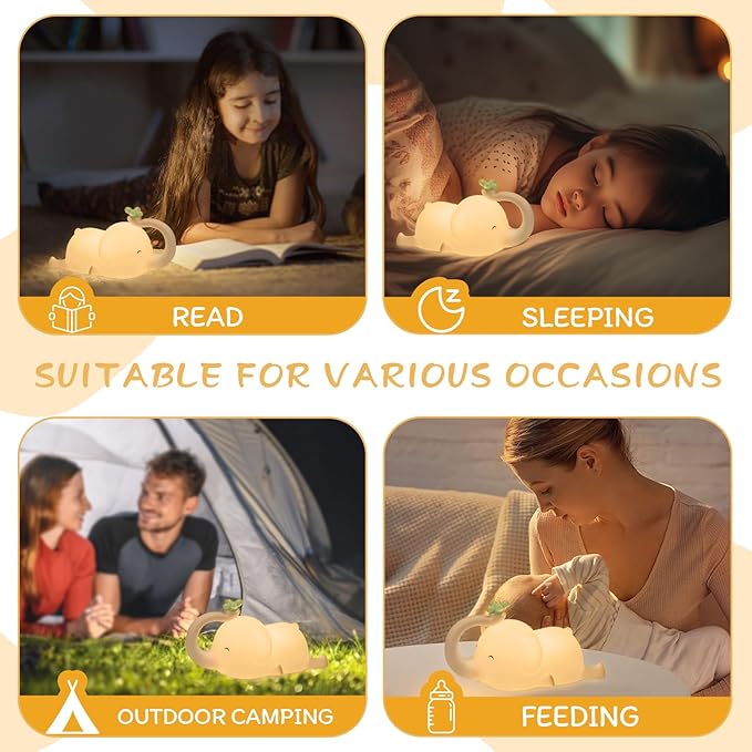 - Squishy Elephant Touch Control: Press the silicone head to cycle modes – simple for toddlers under supervision