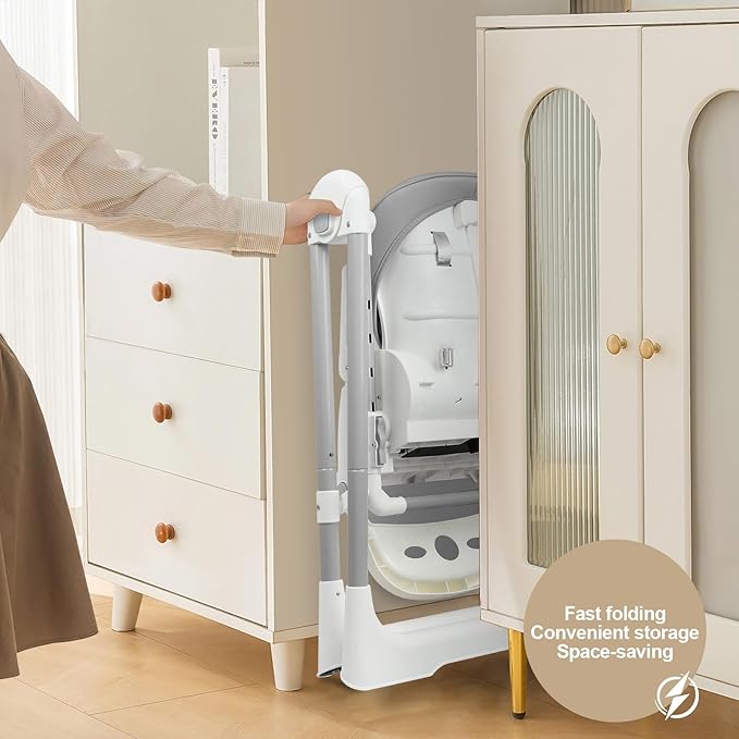 High Chairs for Babies and Toddlers Foldable High Chair Adjustable with Reclining Seat & Leg Rest, 3-in-1 Convertible Baby Swings with Tool-Free Assembly (Grey)