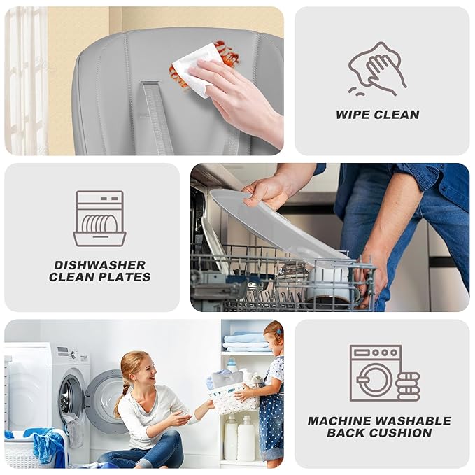 - 【Crumb-Free Design】Removable tray with 2-layer filtration, machine-washable PU seat cover with an extra soft cushion (no more trapped food like traditional fabric).