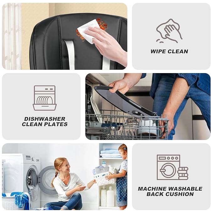 - 【Crumb-Free Design】Removable tray with 2-layer filtration, machine-washable PU seat cover with an extra soft cushion (no more trapped food like traditional fabric).
