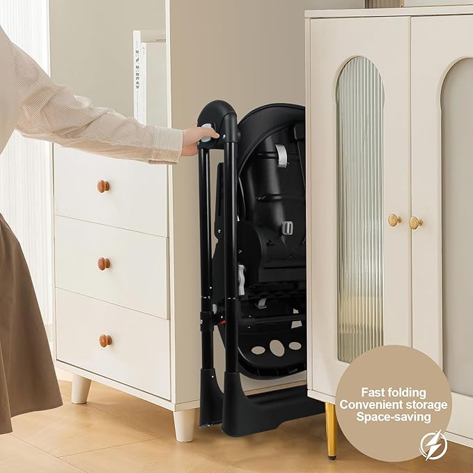 High Chairs for Babies and Toddlers Foldable High Chair Adjustable with Reclining Seat & Leg Rest, 3-in-1 Convertible Baby Swings with Tool-Free Assembly (Black)