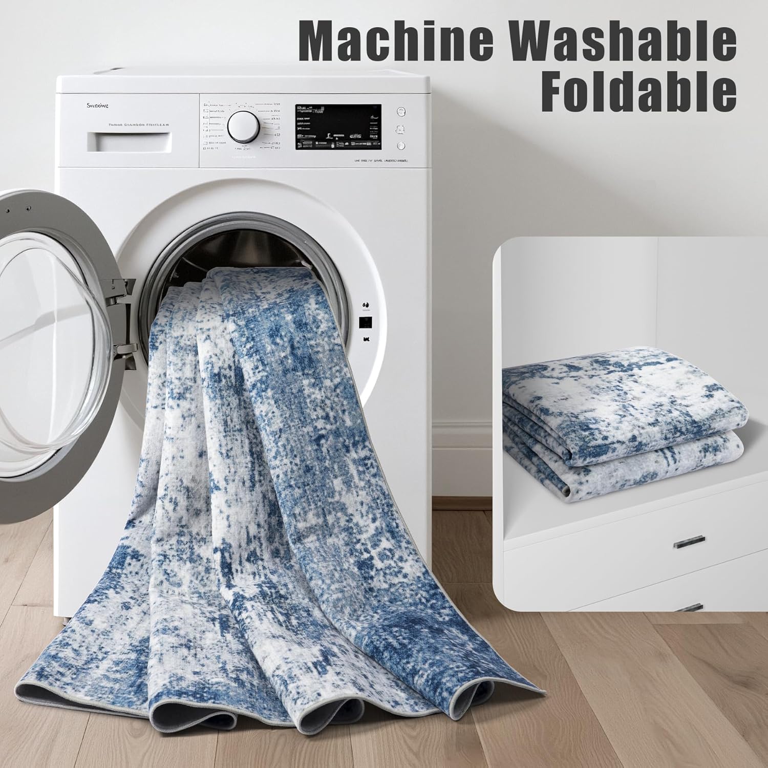 6x9 Area Rug Living Room Rug: Washable Modern Abstract Soft Thin Rug Indoor Floor No Slip Stain Resistant Carpet for Bedroom Dining Room Farmhouse Nursery Home Office - Blue