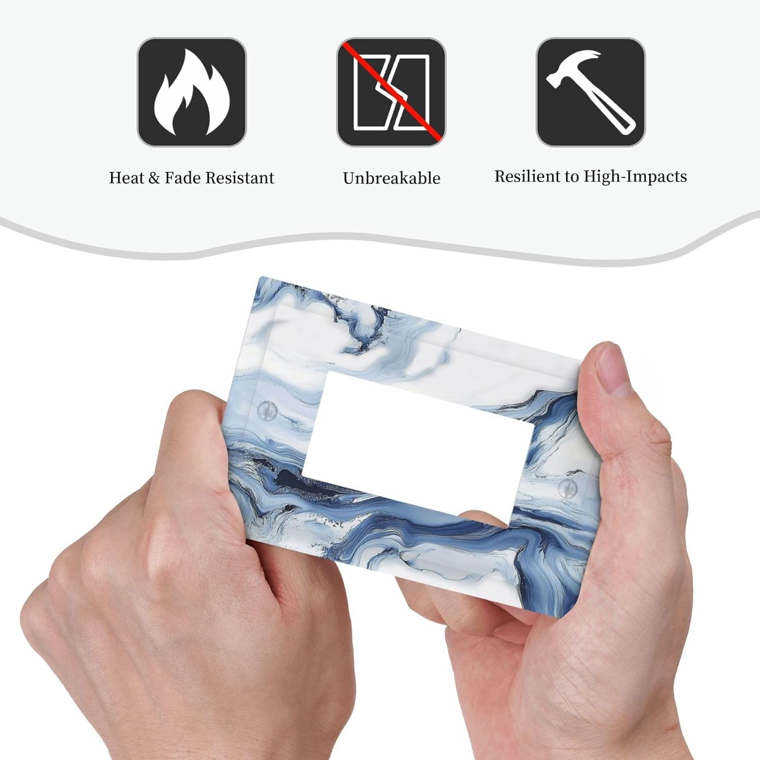 Decorative Outlet Covers White Marble Navy Blue Line Fluid 1 Gang Single Rocker Light Switch Cover Plate Wall Plates Gfci Faceplate For Bathroom Kitchen Decor