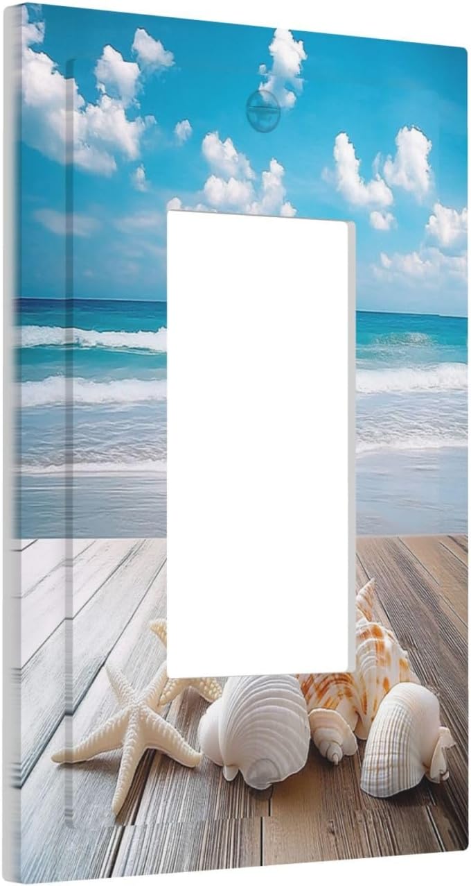 Decorative Outlet Covers Beach Waves Brown Wood Starfish Shells 1 Gang Single Rocker Light Switch Cover Plate Wall Plates Gfci Faceplate For Bathroom Living Room Decor