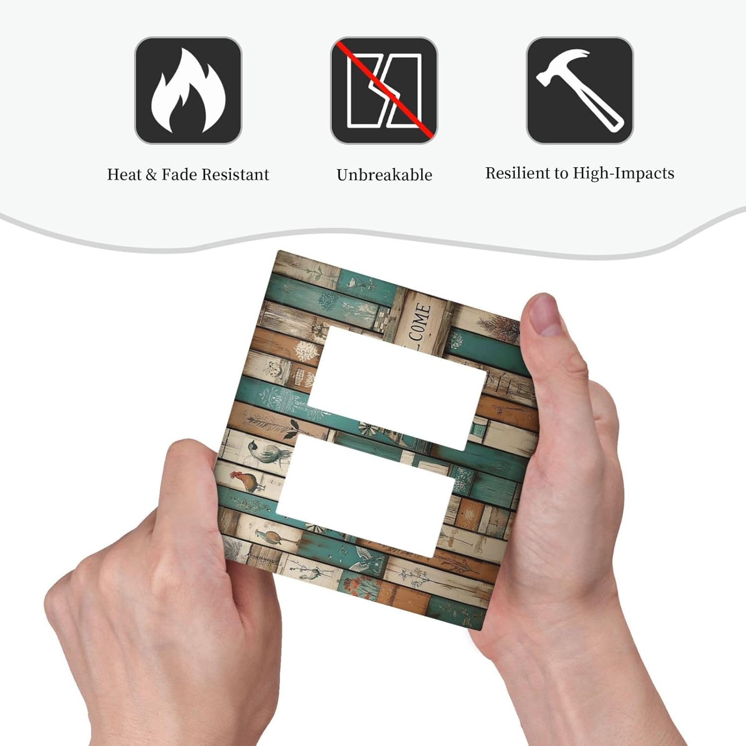 Decorative Outlet Covers Vintage Wood Brown Turquoise Splicing 2 Gang Double Gfci Rocker Electrical Wall Panels Light Switch Cover Plate For Farmhouse Cabin Decor