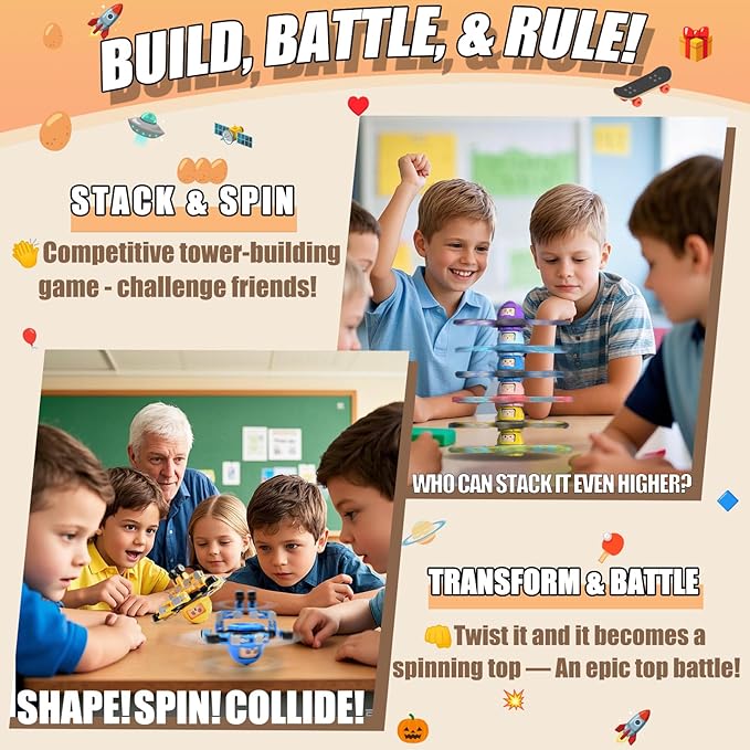 - UNIQUE STACKING FUN & STRESS RELIEF - These party favors for kids are more than just spinning & shape - changing. They can be stacked & spun. Have a competition to see who stacks the highest! They're effective stress - relief tools, reducing stress & anxiety, enhancing focus. Great autism sensory toys & autism toys for kids with ADHD, autism, energetic, obsessive-compulsive disorder, and beneficial for adults with high stress and anxiety