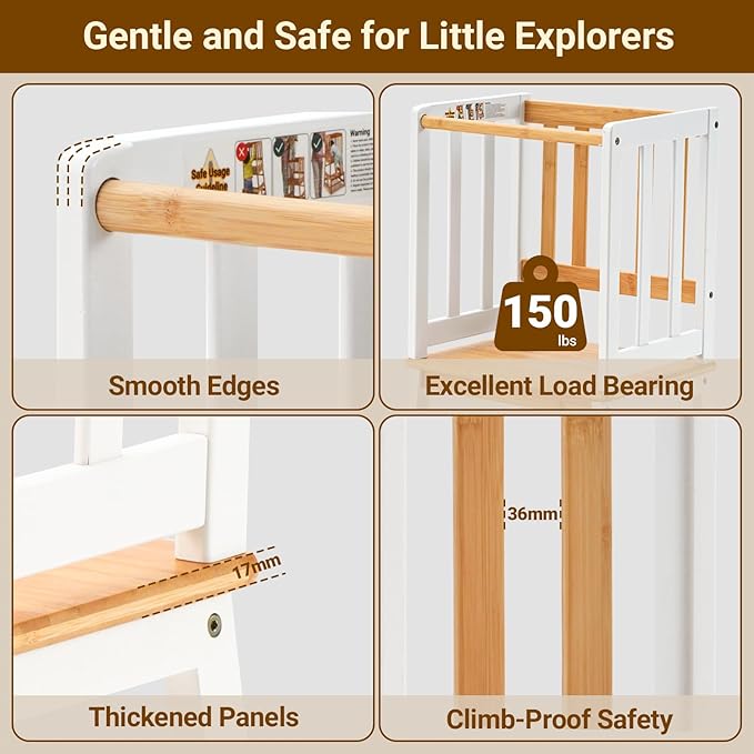- Hands-Free Convenience – No more juggling your little one while cooking or constantly being pulled to pick them up! This standing tower brings your child to counter height, keeping them safely by your side. They can observe, help, or simply be your taste tester, letting you enjoy both hands free to get things done while your child stays engaged and within sight.