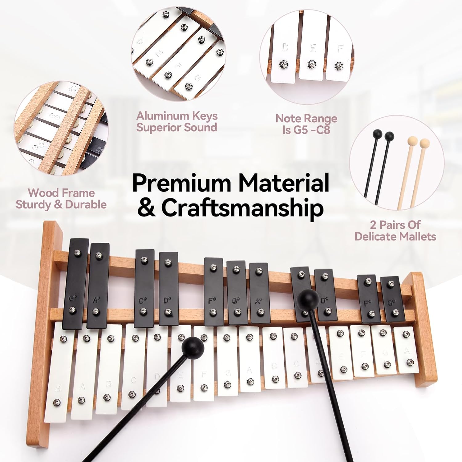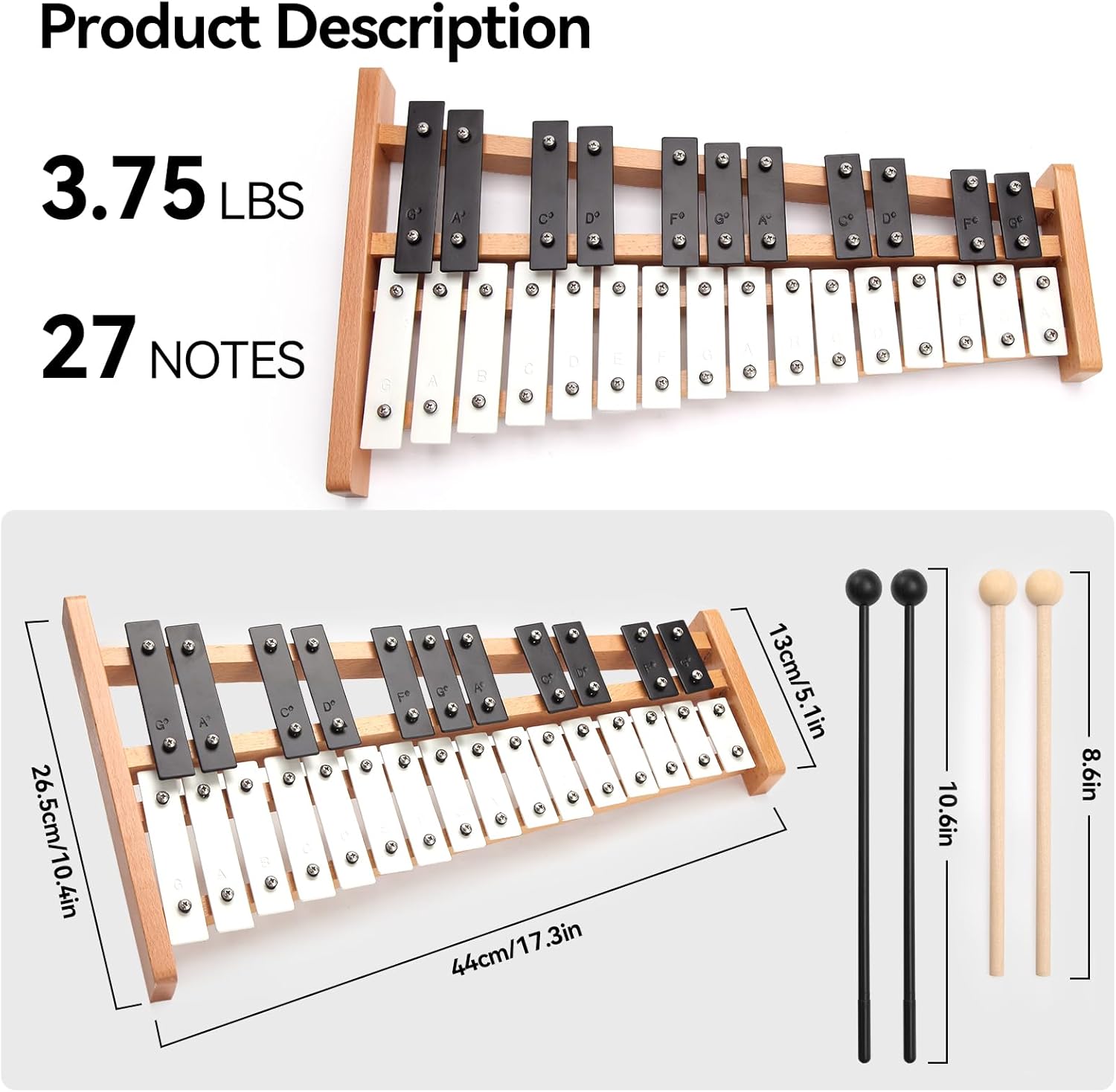 - 【27 Notes Standard Design】With the 27 Notes standard design, this glockenspiel xylophone can be covered a wider range. Allowing you to play a wide range of tunes to meet different learning needs. Ideal for music lessons or professional performance practice