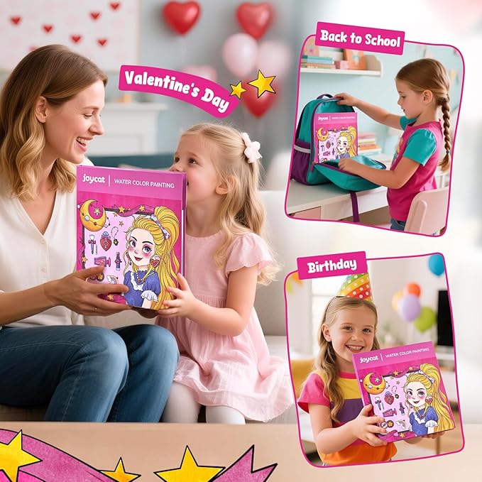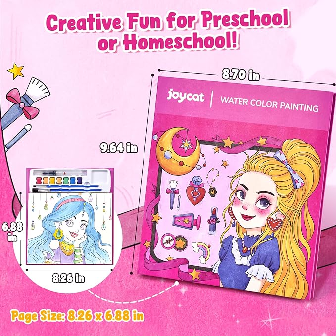 JoyCat Paint with Water Coloring Books for Toddlers, Watercolor Painting Sets for Kids Ages 3-5 4-8, Arts and Crafts Drawing Activities Toy Birthday Gift for Boys Girls (Makeup & Manicures)