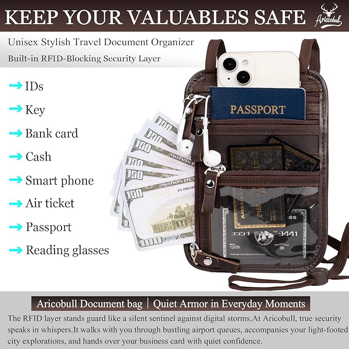 - Discreet Anti-Theft Design – Our Ariscobull Neck Wallet Makes It Super Easy To Add Or Remove Items, Keep Valuables Hidden Under Clothing, Perfect For Travel And Crowded Areas.