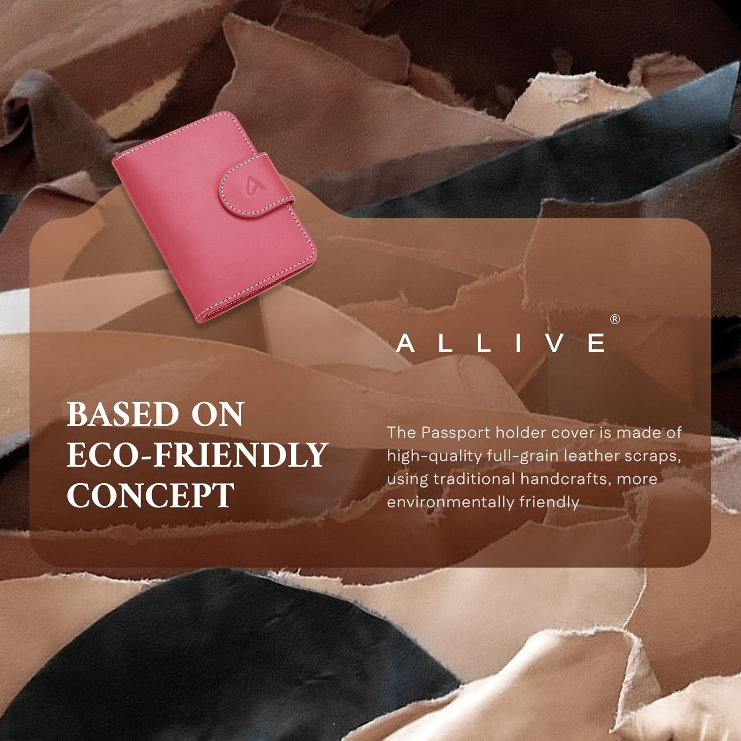 ALLIVE Rfid Passport Holder for Travel, Women, Rfid Passport Cover Wallet, Genuine Leather Passport Holder for Travel with AirTag Hidden, Airport Essentials, Travel Gifts (Rose Pink)