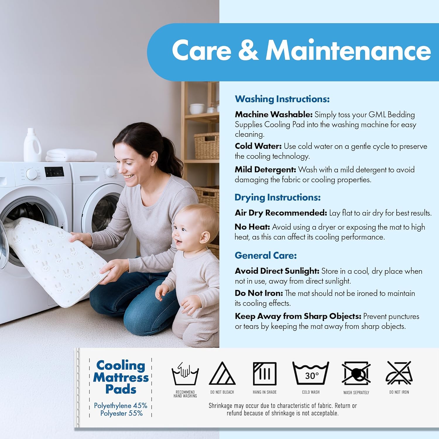GML Bunny Cooling Crib Mattress Pad – Waterproof, Breathable Baby Mattress Protector for Toddler Bed – Hypoallergenic, Soft & Durable for Sensitive Skin – Made in Korea, Q-Max 0.4 Small Size, 27.5x47