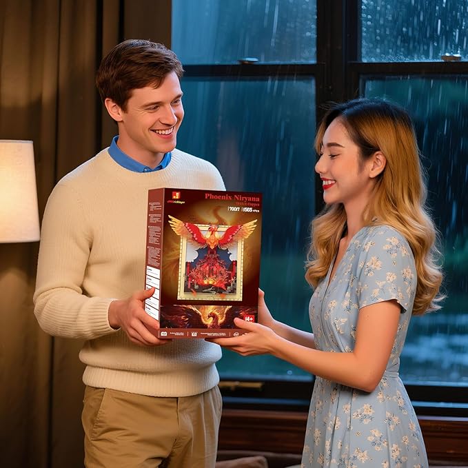 - Phoenix Nirvana Building Set with Lights: This building block set has a built-in warm-colored LED strip, The phoenix's eyes, the sun behind it, the volcano, and the lava all have LED light strips that passes through the gaps in the block to simulate the light effect of a phoenix rising from the ashes. This highly detailed building kit allows you to create a magnificent phoenix nirvana model, recreating the classic Phoenix Nirvana scene and experience the fun of the magic world.