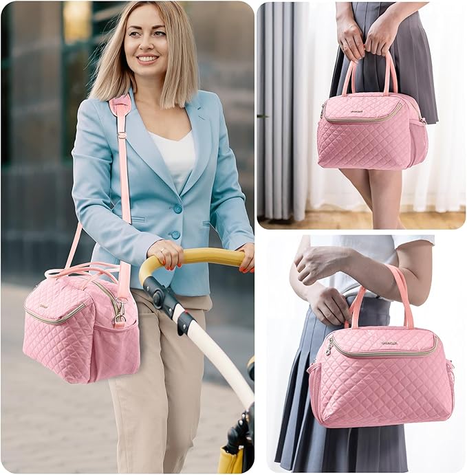 - Versatile and portable: It's suitable for working moms and busy women who store breast milk. Its top handheld and lightweight design makes it easy to carry and transport. Whether at airports, picnics, parks, shopping, or the office, our wearable pump bag ensures convenience wherever you go.