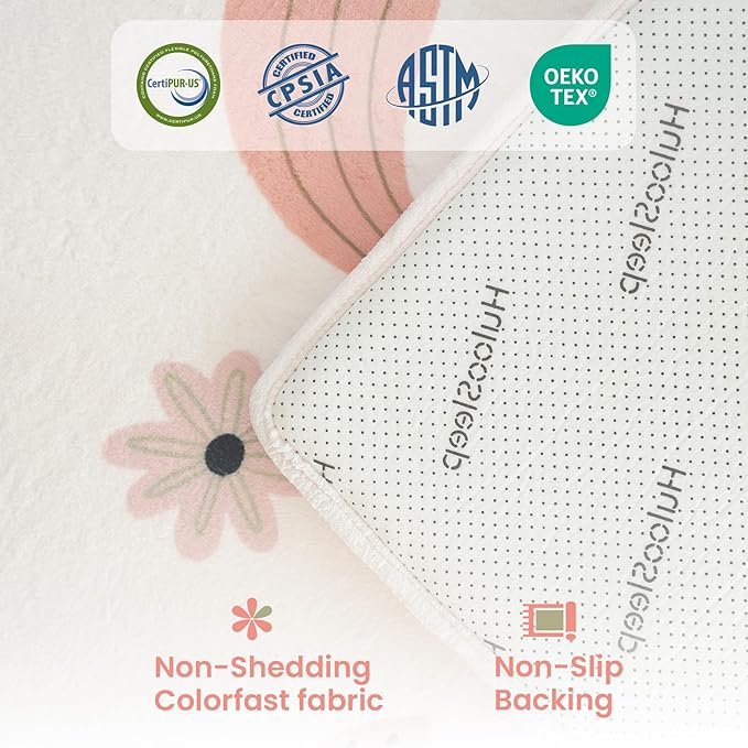 - 【Certified Safe & Non-Toxic】 – Rigorously tested for safety, this nursery rug meets OEKO-TEX(on shell), ASTM, and CPSIA standards, ensuring a safe, chemical-free surface for your baby to crawl, play, and explore.