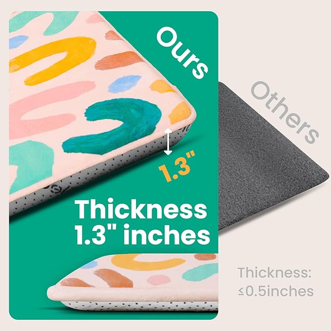 - 【Ultra-Soft 1.3" Memory Foam Cushioning】 – Designed for ultimate comfort, this baby play mat features a premium 1.3-inch thick elasti-foam core, providing superior support for crawling, playtime, tummy time, or naps. The plush yet supportive foam protects little knees and elbows while ensuring a cozy surface for relaxation.