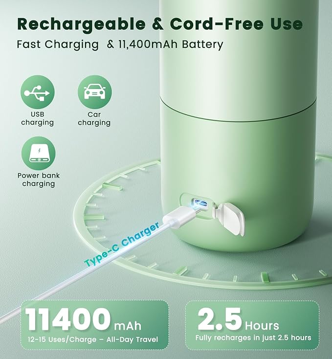 - 【11400mAh Rechargeable Battery & Cordless Convenience】Enjoy 12–15 warmings on a single charge for all-day readiness.USB-C fast charging powers up in just 2–3 hours, eliminating the need to find outlets. Voice-tank's Travel bottle warmer is ideal for travel, outdoor activities, and night feedings