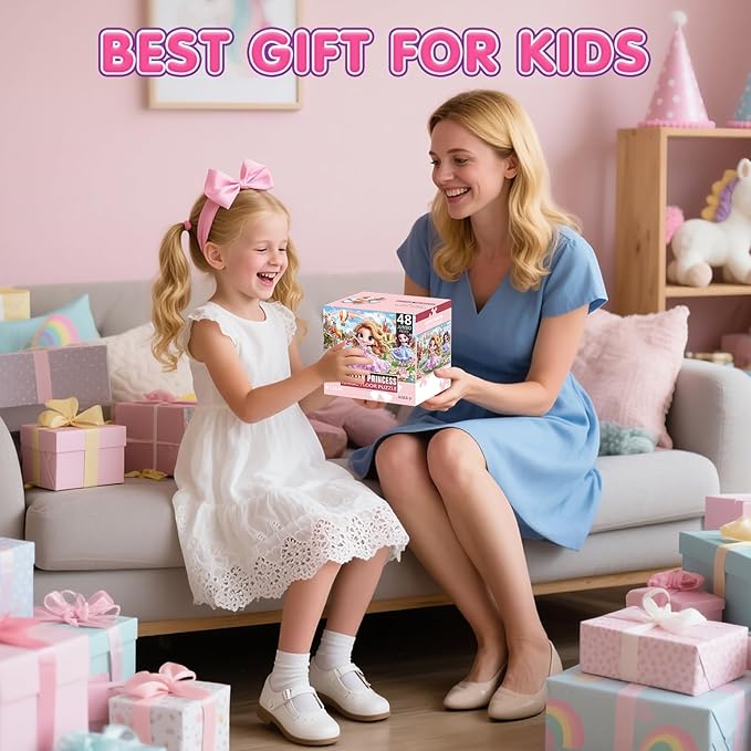 - Perfect Gift Ready:The princess theme makes this floor puzzle an ideal gift for girls. It is also a great preschool learning gift that is sure to spark girls' imagination and love for learning.It’s perfect for family gatherings, where kids and adults can enjoy putting puzzles together to create lovely parent-child moments. Whether for a birthday, Thanksgiving, Christmas, Easter, or any other special occasion, it makes an ideal present