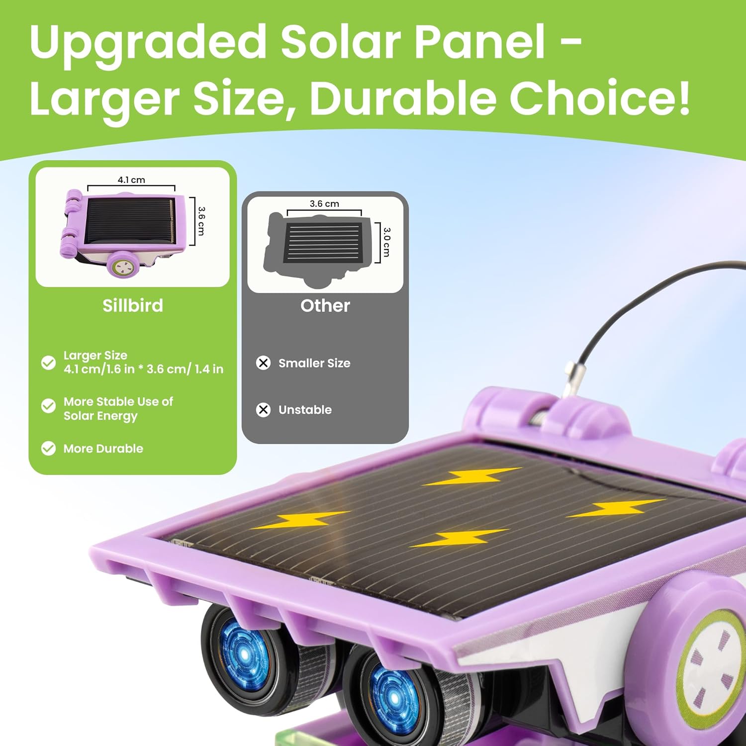 - ⚡ Upgraded Larger Solar Panel: Features a large sun-catching surface to harvest more sunlight and deliver stronger power output. Kids DIY build their own robot, learning how solar energy drives work