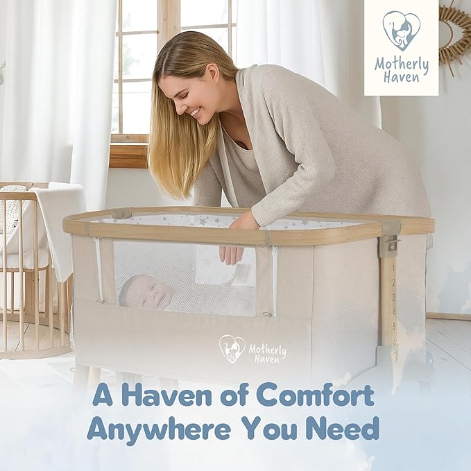 - Portable Bassinet for Baby & Travel Friendly: Lightweight and foldable bassinet, the Motherly Heaven Baby bassinets bedside sleeper is perfect for moving from room to room or traveling. Comes with built-in 4 wheels with locks for smooth mobility and easy assembly without tools.