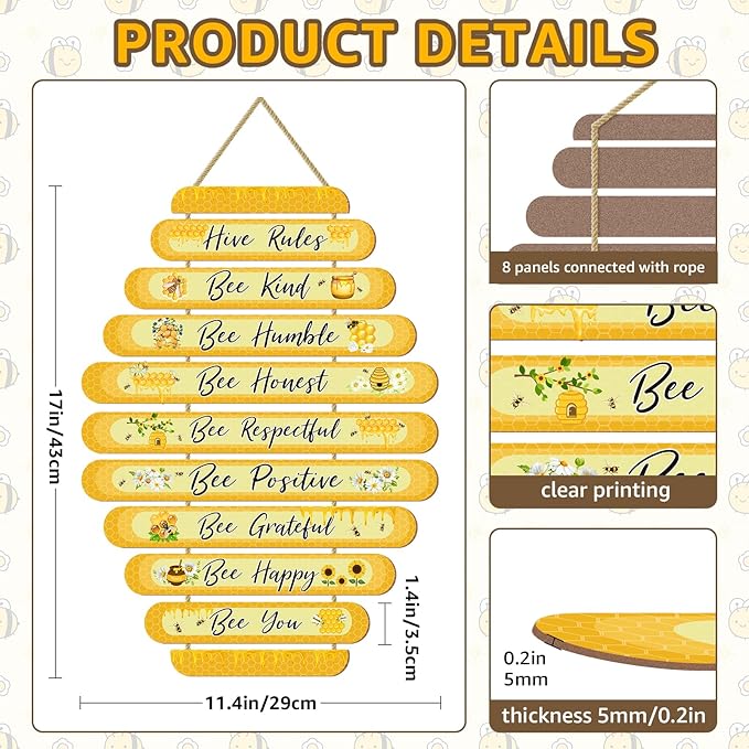 - 3[Hangs Anywhere, Wins Everywhere] Transform ANY space from ‘meh’ to ‘hive-five!’ in 30 seconds Kitchen = “Honey, where’s my spatula?” → Insta-worthy motivational zone Nursery = Buzzy ABCs for mini beekeepers-in-training Coffee Shop = Customers asking, “Where’d you get THIS?! Pro tip: Also works as a bee-themed proposal backdrop