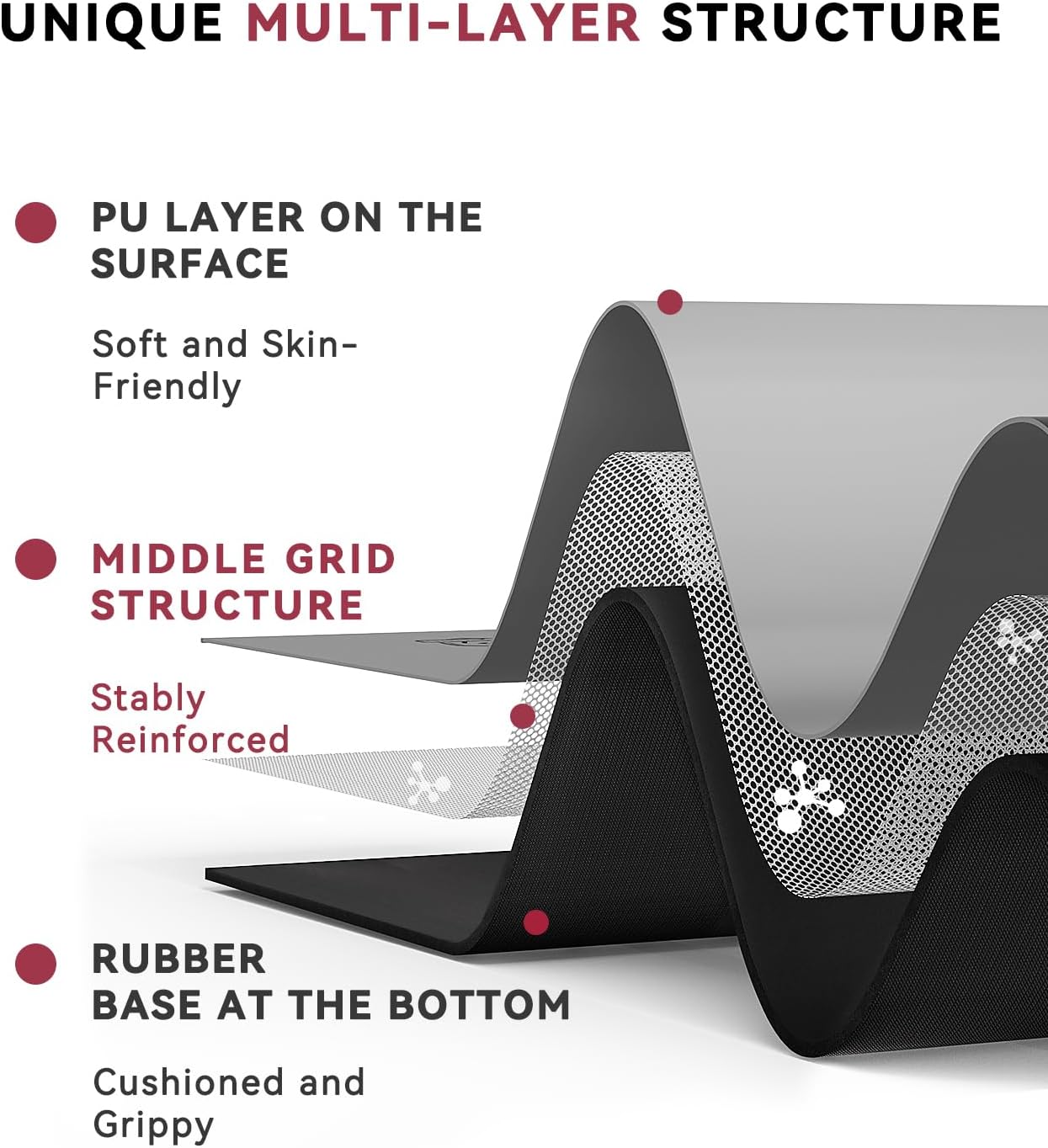 HAPBEAR Large Yoga Mat 72"x30" - 5mm Thick PU Top & Rubber Bottom - Non-Slip Wide Exercise Mat with Dual Layers - High Shock Absorption for Professional Yogis & Home Workouts - Bonus Oxford Bag Included