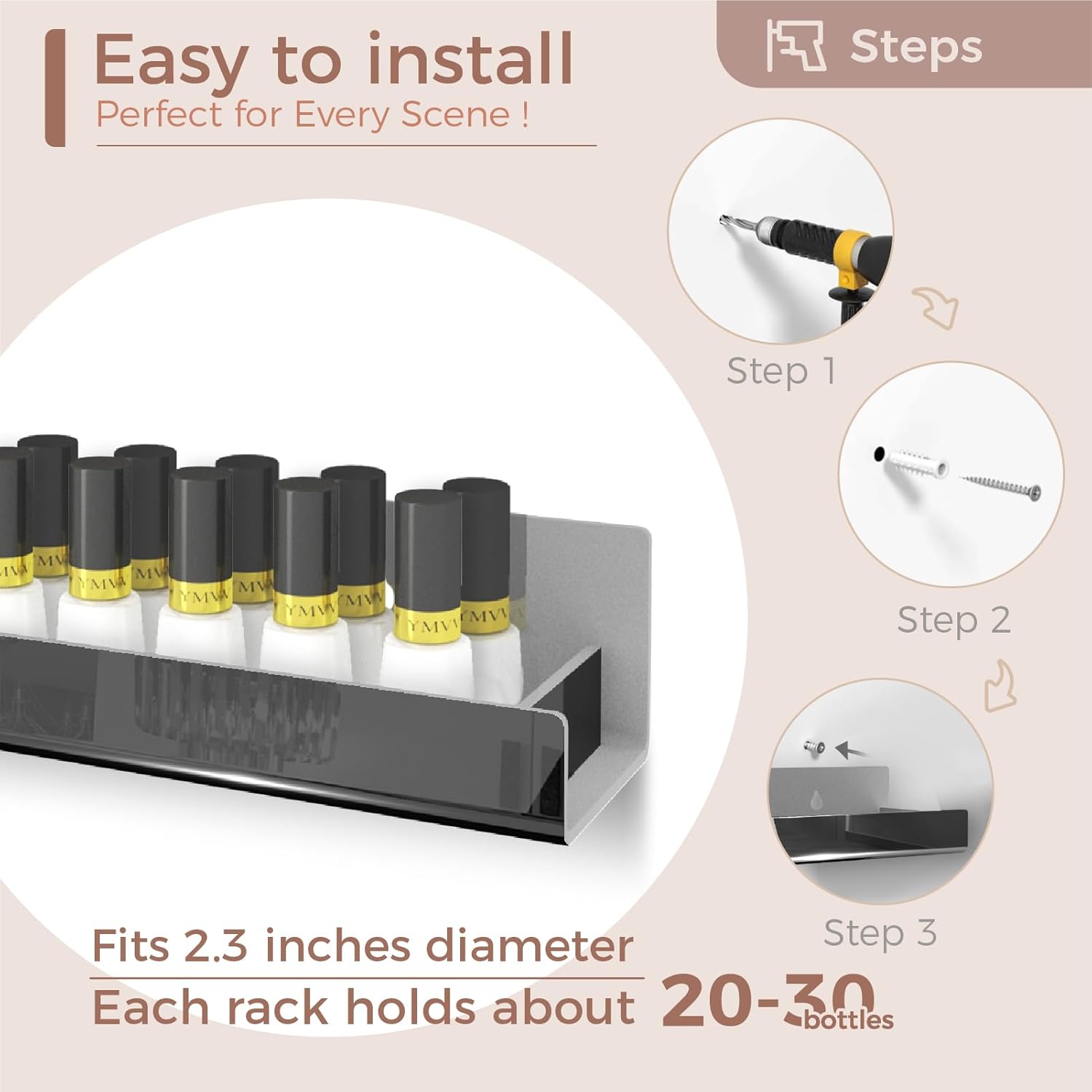 - Upgraded Design: Increases the depth of the shelf to hold about 20-30 bottles (depending on the size of the bottles), it can also be used as a bookshelf, paint and sunglasses organizer, essential oil organizer.