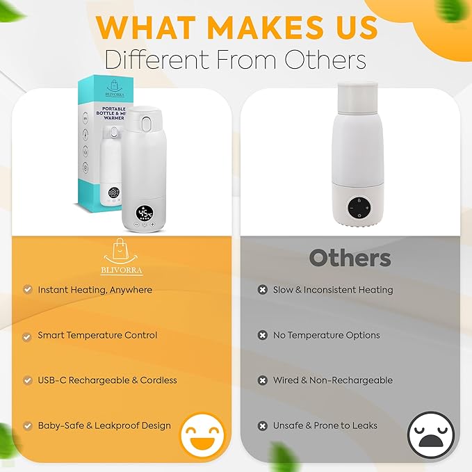 - 𝐋𝐨𝐧𝐠 𝐁𝐚𝐭𝐭𝐞𝐫𝐲 𝐋𝐢𝐟𝐞 & 𝐔𝐒𝐁 𝐂𝐡𝐚𝐫𝐠𝐢𝐧𝐠-Equipped with a high-capacity rechargeable battery, this bottle warmer offers extended use throughout the day without frequent recharging. Perfect for long outings or overnight trips. Convenient USB-C charging ensures universal compatibility and fast recharging on the go.