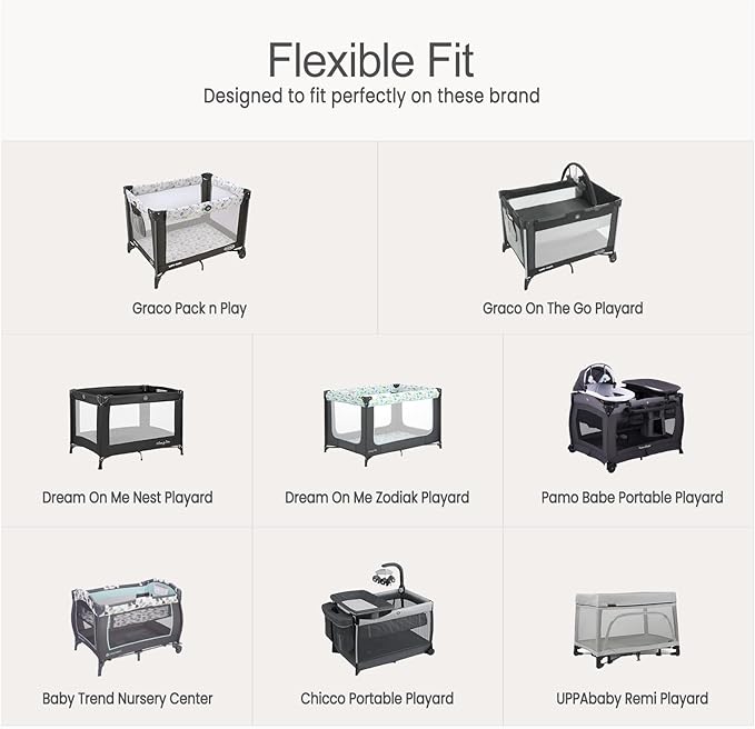 - Flexible Fitted: Pack n play mattress of different brands vary slightly in size. Our pack n play sheets fitted for Graco, Dream On Me, Baby Trend, Chicoo, UPPAbaby playard and other brands.