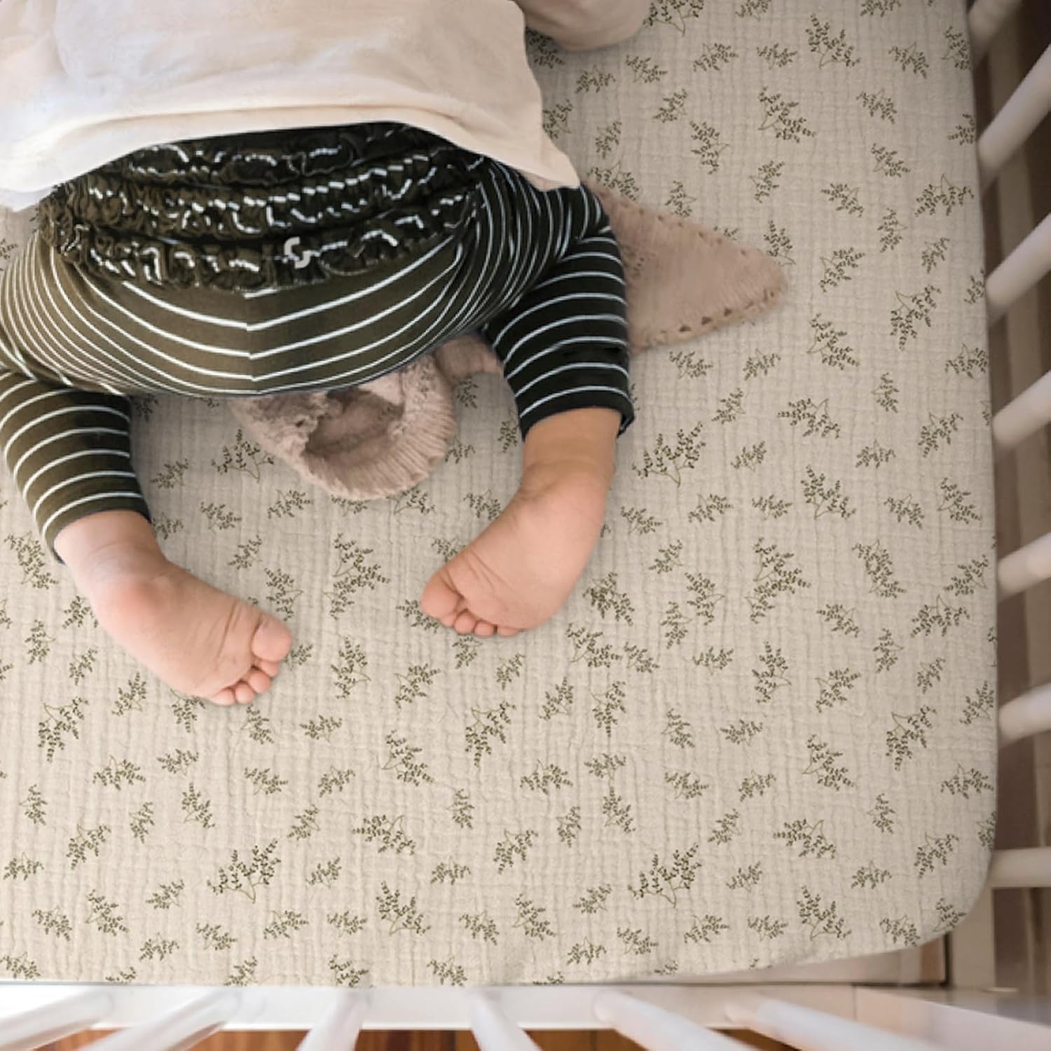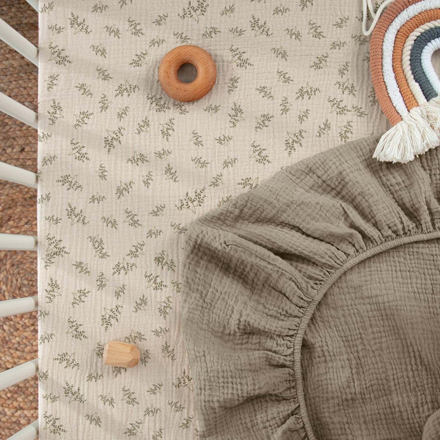 - Muslin Cotton: The muslin mini crib sheets are soft and breathable to give your baby a cozy place to sleep. They make a smoother transition from snuggled in your arms to safely sleeping in their mini crib.