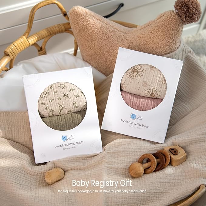 lulumoon Pack N Play Sheets Muslin: Cotton Fitted Sheets for Pack and Play Mattress - Soft Playard Sheets for Boys and Girls