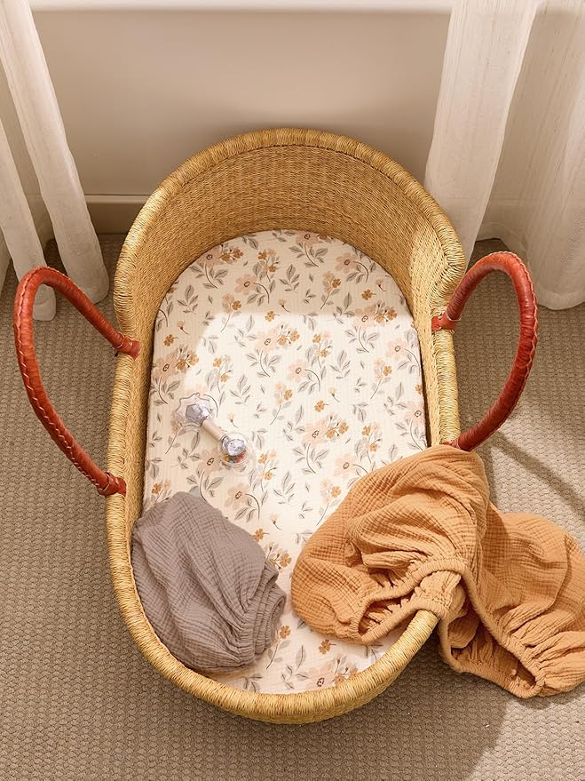 - SOFT NATURAL COZY: TILLYOU baby bassinet sheets are crafted from breathable 100% cotton muslin, offering a luxuriously soft and lightweight feel that's gentle against your baby's delicate skin. Our natural, chemical-free dyes ensure the fabric is hypoallergenic, odorless.Provide a safe and cozy sleeping environment for your baby.