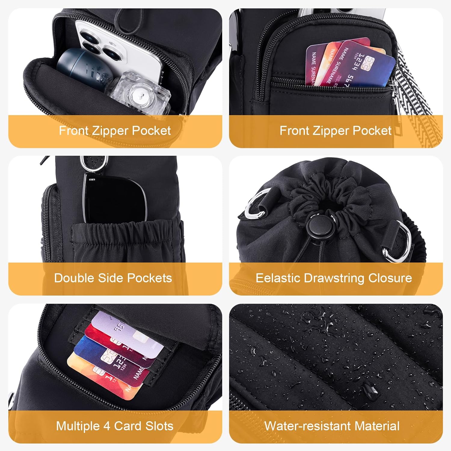 - 【 Functional Storage for Daily Essentials】 More than just a bottle holder—water bottle crossbody bag includes a zippered front pocket that fits large phones like the iPhone Pro Max, plus 4 built-in RFID card slots. Two side pockets easily store sunglasses, sanitizer, or other small essentials, making it perfect for everyday use.