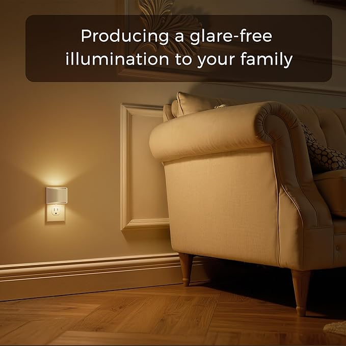 - Auto-Sensing Nightlight -- With dusk to dawn light sensor built in, it will automatically turn off in 2 seconds when there is plenty of light and turn on when the environment is dim