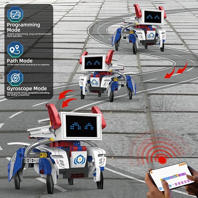 - 2.REMOTE AND APP CONTROL ROBOTS: Our Robot kit support remote control and APP bluetooth connection control (APP remote control mode/path mode/gyro mode/stem programming mode). Multiple LED emotions adds an extra layer of engagement and excitement to play. The inclusion of app control introduces programming concepts, helping children learn and develop valuable skills.(Remote control need 2AAA batteries: Don’t included).
