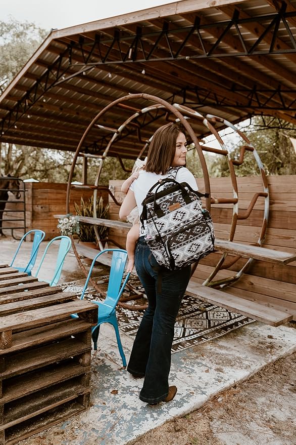 Wrangler Aztec Backpack Multifunction Baby Travel Bag with Changing Pad, Stroller Straps and Pacifier Case WG2204-91103BK