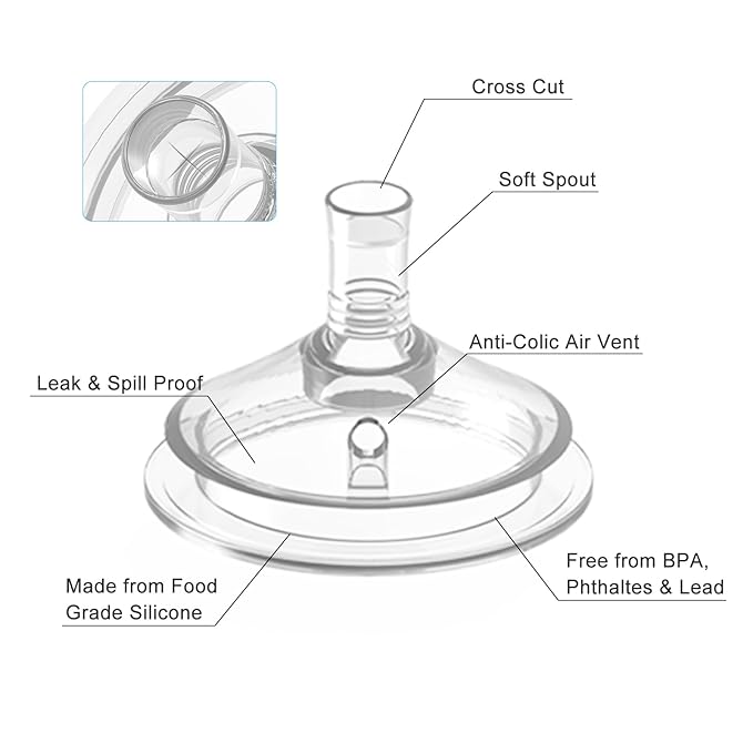 - Includes: 4 sippy spouts(Suitable for ages 8 months and up:A soft spout carefully designed for babies transitioning from breastfeeding or bottle-feeding to using a sippy cup).