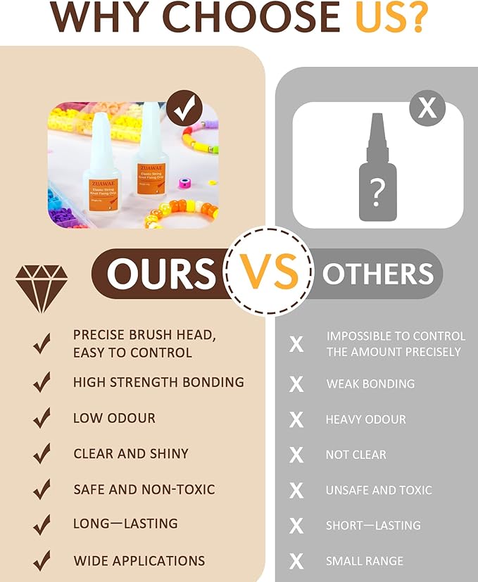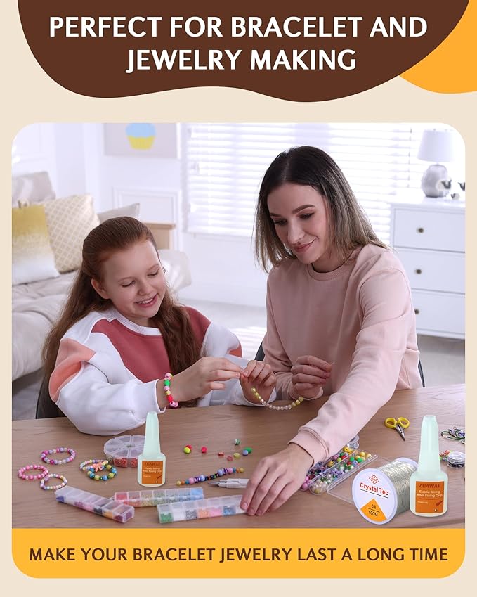 - 【Surprise Match Bracelet Sting Kit】Bracelet glue set includes 2 pcs of 10g jewelry glue with brush head,1 roll 0.8mm/328ft elastic string for bracelets, 2 beading needles. Make friendship bracelets with our jewelry glue for stronger friendships.