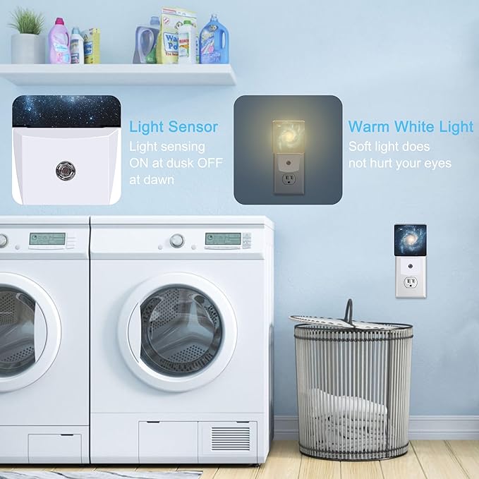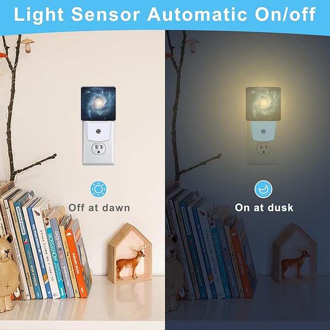 Space Scene with Stars in Galaxy Plug in Night Light with Auto Dusk to Dawn Sensor,Warm Night Lights for Boys Girls Bedroom Bathroom Hallway Kids Room Gifts