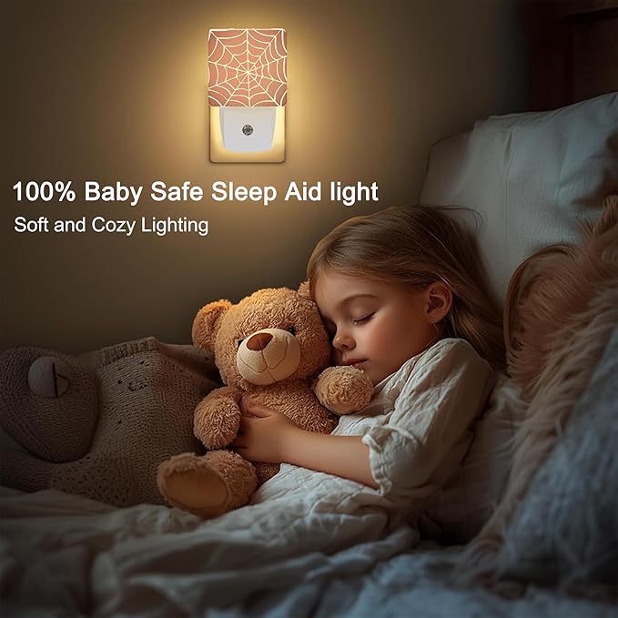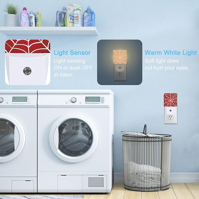 Spider Web Red Plug in Night Light with Auto Dusk to Dawn Sensor,Warm Night Lights for Boys Girls Bedroom Bathroom Hallway Kids Room Gifts